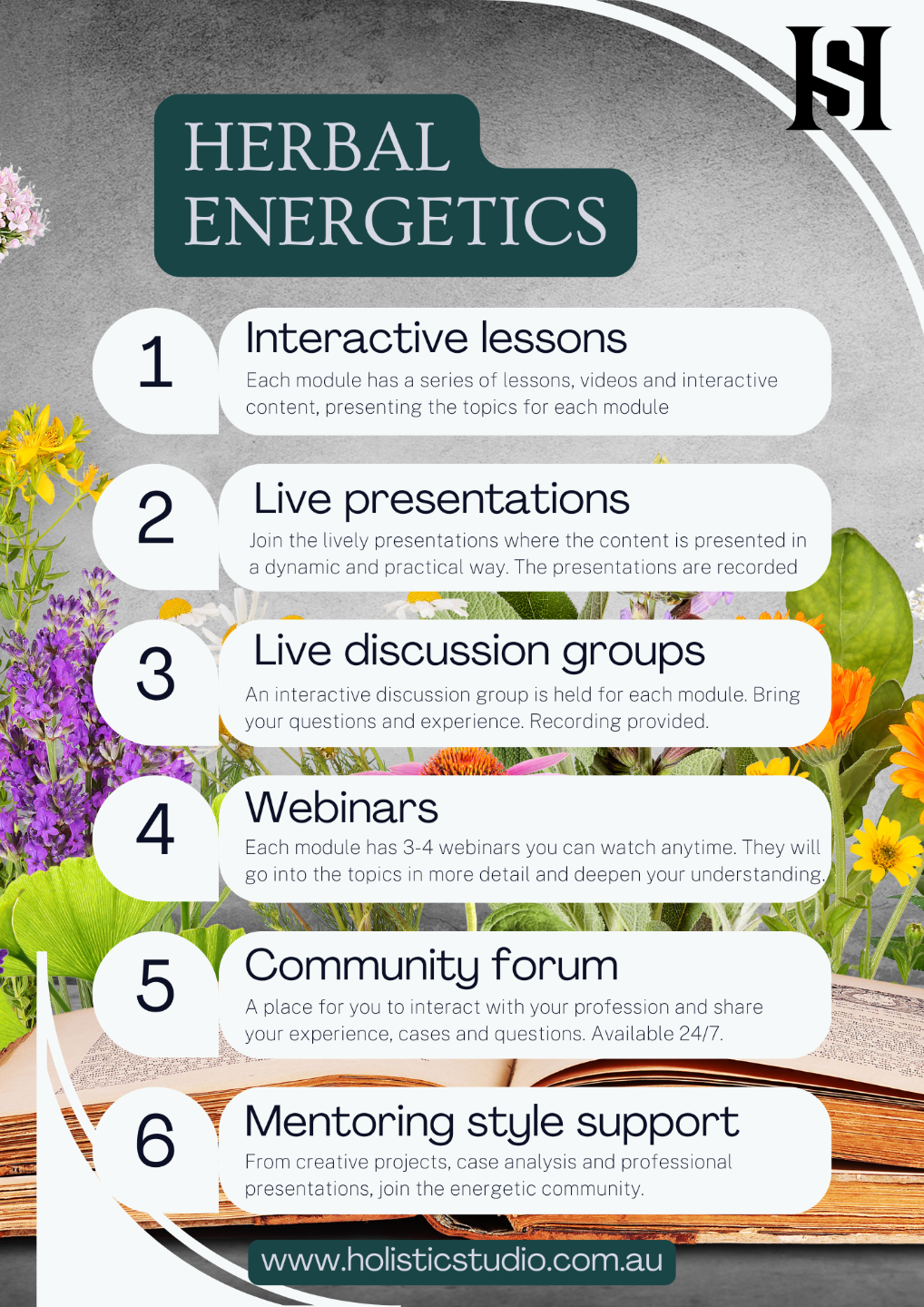 Herbal Energetics is a unique online live and interactive course. Six comprehensive modules contain interactive lessons, webinars, practical activities and there are live discussion groups.